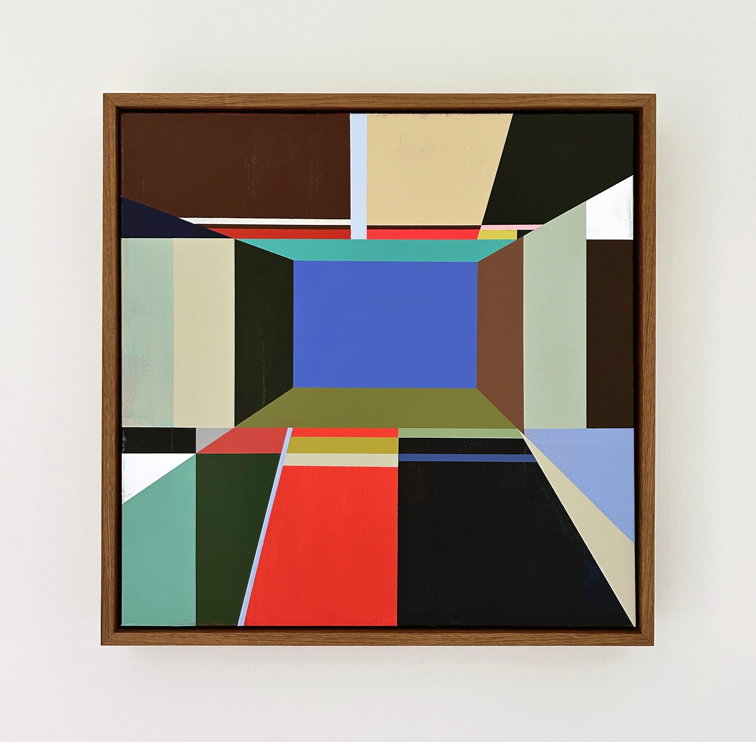 Current explorations include the painting series Balance I. This series is generated by layering geometric fields of color. Transparency and texture are added until a compositional balance is achieved. Explorations may stray from traditional color theory; often one “wrong” moment allows the entire work to feel “right.”