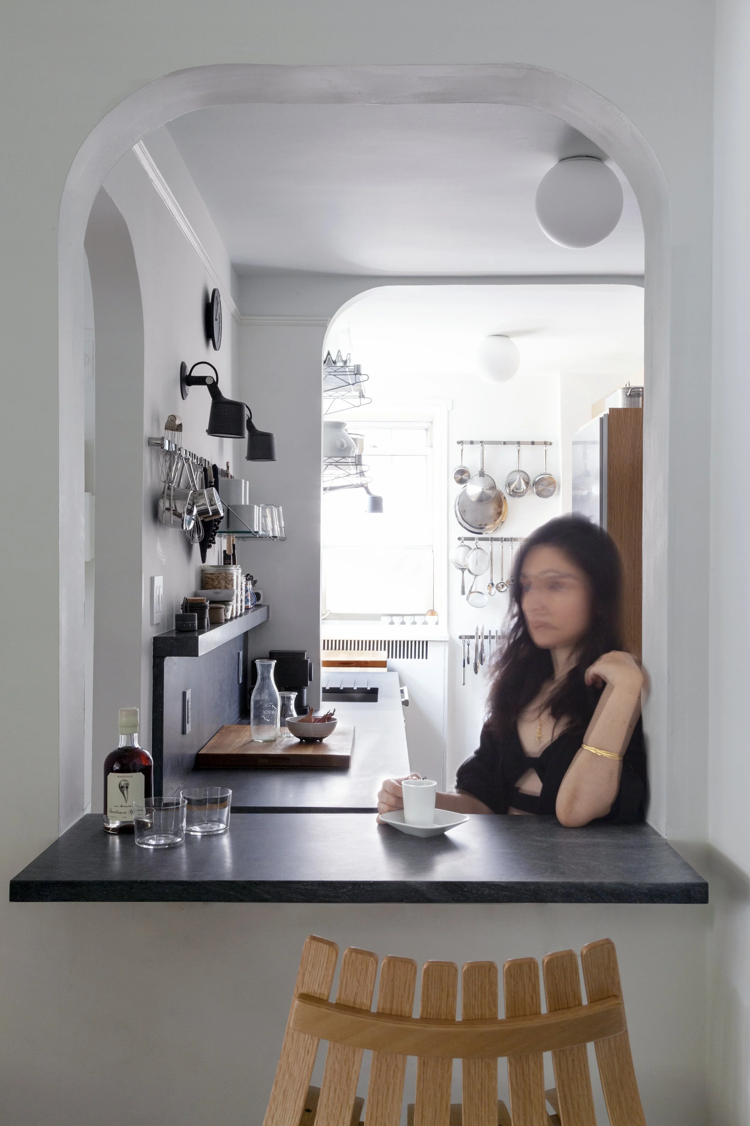 A chef and restaurant-industry professional was in need of a kitchen worthy of his impressive collection of Italian racks, shelving, and containers. The existing set-up lacked the necessary appliances, cabinetry, and architectural detailing. Furthermore, the space was inadequate—housed in a pre-war building, the kitchen began as a tiny nook and eventually expanded over the decades into a bifurcated hallway.
